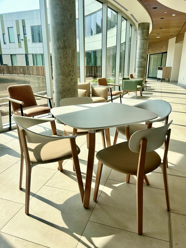 The YWCA Kikaskihtânaw Centre, meaning "the place we all succeed," envisioned fostering community, kinship, hope, and healing. Our role with the designers of 1080 Architecture was to bring this vision to life through strategic furniture selection and placement. It was understood that furniture is more than just seating. Using a trauma-informed approach, pieces were chosen to be a de-escalation tool, promoting calm, comfort, and safety. As YWCA CEO Melissa Coomber-Bendtsen emphasized, "It was important...to make [the building] feel homey, soft and safe." The budget prioritized client areas, investing in high-quality, inviting pieces that communicate worth and care. "When I saw how Teknion’s furniture brought people together in a way that honors relationships first, I knew it was the right choice," Coomber-Bendtsen noted, highlighting the furniture's power to encourage connection. Our key furniture considerations included: