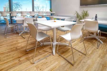 To maintain a consistent finish palate throughout the space, Orano chose Teknion’s finishes in Very White with Coastal Elm that is textured to give the look & feel of natural wood with the durability of High Pressure Laminate. Different worksurface thicknesses within the same color palate allows a uniform look with a high end finesse in boardrooms and executive offices when paired with Sit-On-It Prava executive chairs. Teknion DNA seating along the walls with electrics & laptop tables provide additional seating and functionality while maintaining an executive environment.