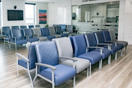 Concept3 Business Interiors Limited collaborated closely with both Colleen DeChamp (Interior Designer) and each individual tenant to meticulously curate a selection of high-quality furnishings and finishes to bring The AVE Medical Complex to life. By choosing quality pieces from Teknion, Global Healthcare Upholstery, OFGO, and Sit-On-It Seating, they ensured a perfect blend of comfort, durability, and aesthetic appeal throughout the building. The thoughtful addition of a Quiet Earth moss wall to enhance the space with a touch of biophilic design, infused the complex with a sense of tranquility while adding a few selections of Hush etched wall acoustic not only created a fantastic visual statement, but contributed to sound control for a serene environment for patients and staff alike. The final addition of Elite Blinds provided optimal light control and privacy, rounding out a thoughtfully designed interior that prioritizes innovative design and functionality in perfect harmony within the multi-floor medical building.
